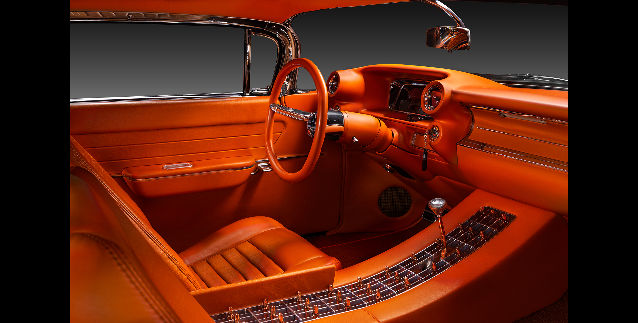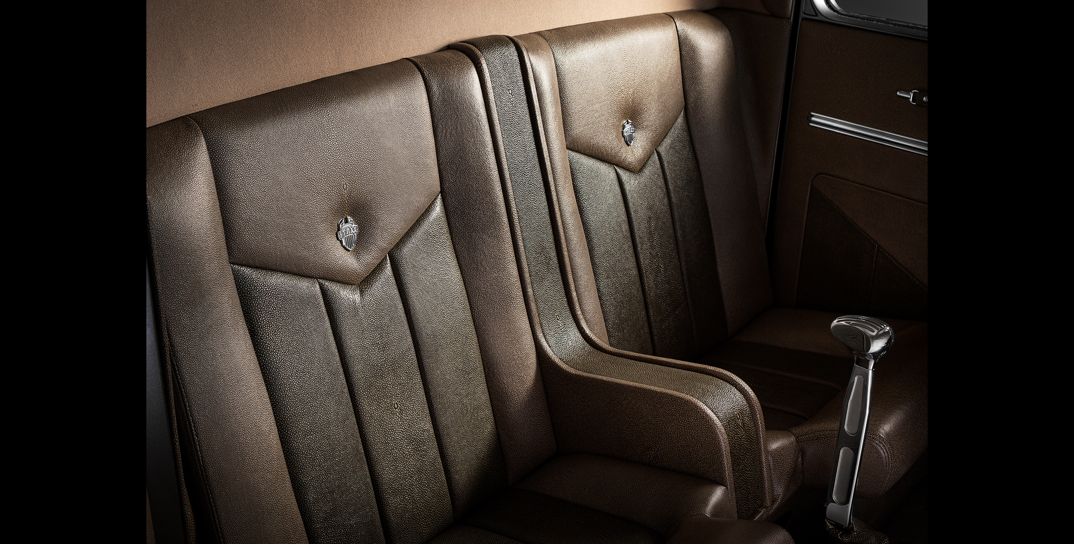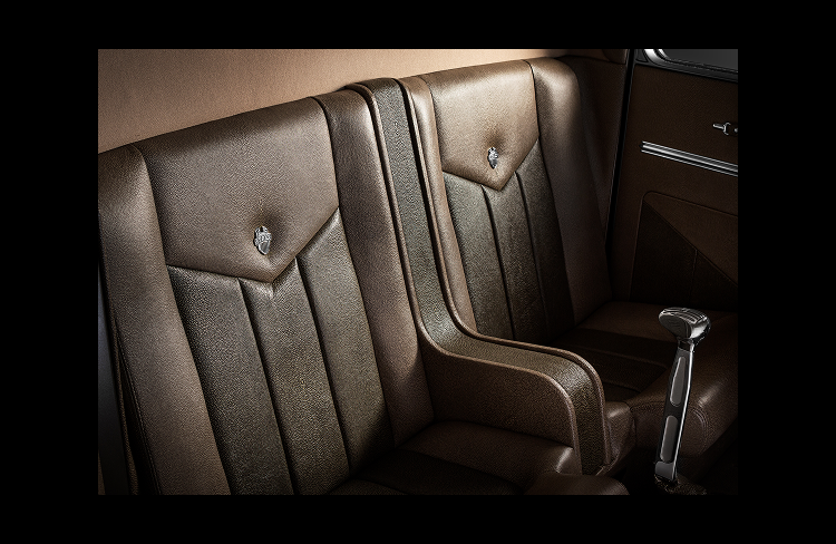 One-of-a-kind handcrafted leather interior with custom contoured bucket seats and upholstery