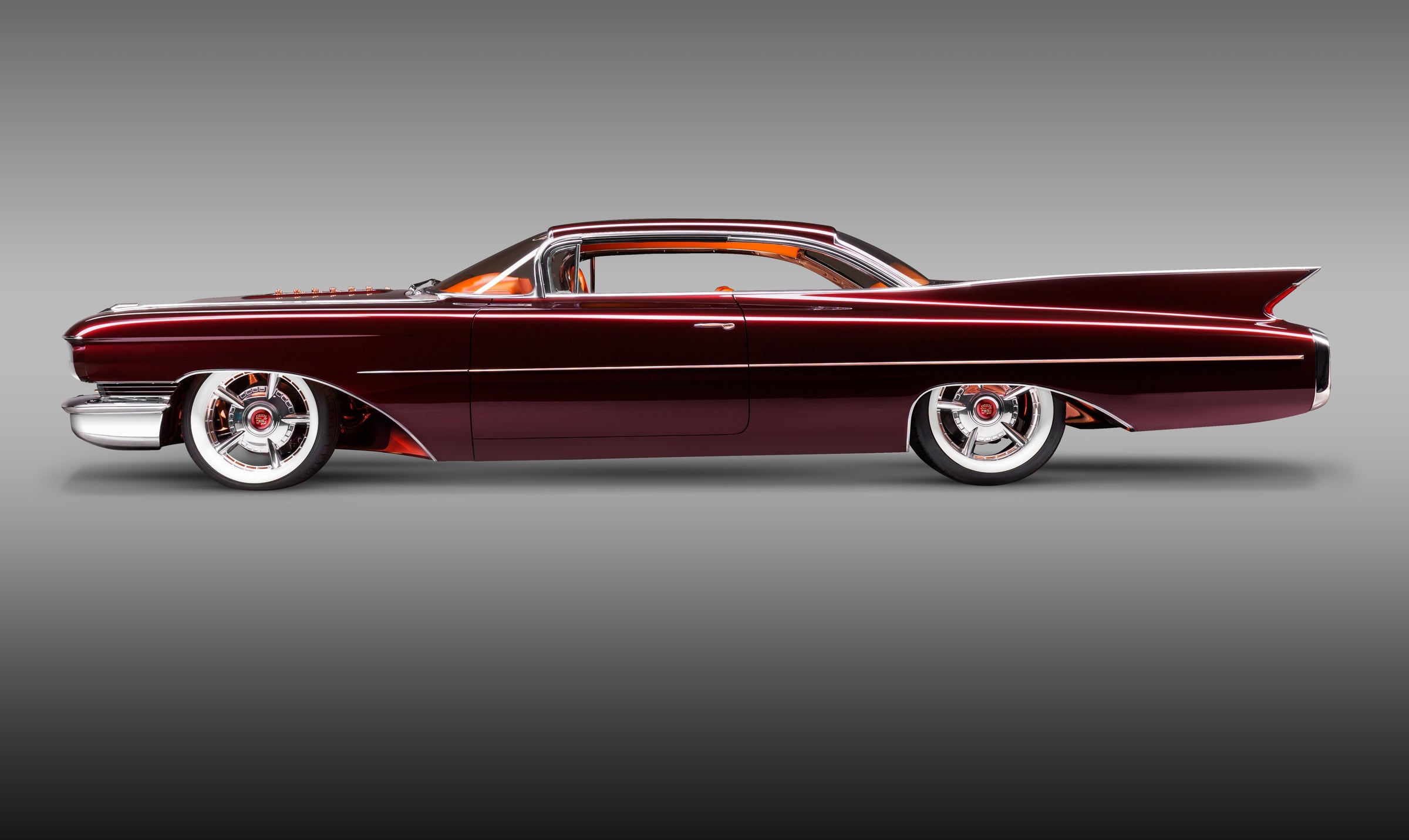 The "Copper Caddy" is a stunning custom 1960 Cadillac Coupe DeVille, built with a perfect blend of luxury, performance, and timeless design. After dreaming of owning this car for nearly 60 years, Jerry Logan collaborated with legendary builders Gene Winfield and Dave Kindig to create this one-of-a-kind masterpiece. With a custom candy brandywine finish, a chopped stance, and a powerful 550 HP aluminum 454 GM Performance engine, this bold, beautifully customized Cadillac is a masterclass in standout design.