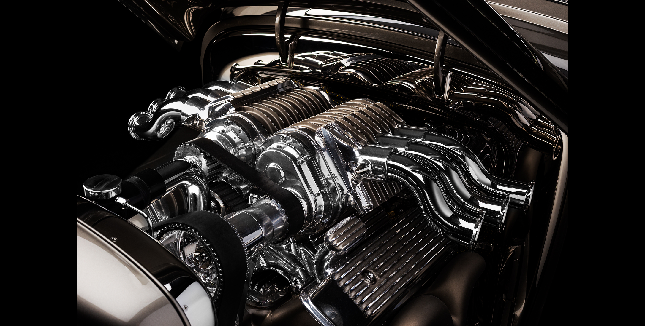 Polished stainless headers and full-length exhaust